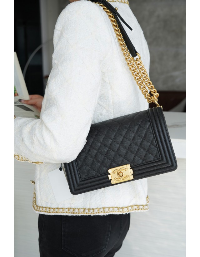 샤넬 르 보이백 미디움 금장