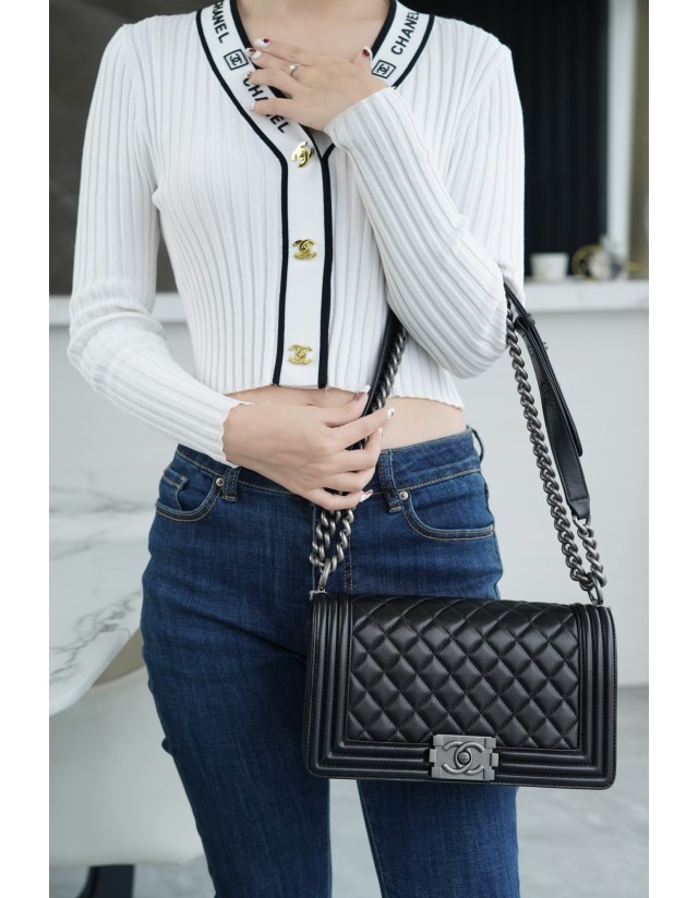 샤넬 르 보이백 미디움 은장