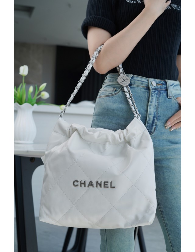 • 샤넬 22P 핸드백 스몰 화이트 은장