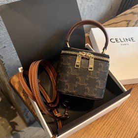 셀린느 트리오페 캔버스 카프스킨 미니 베니티 토트백