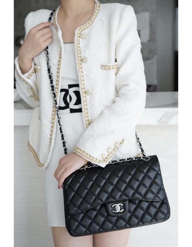 샤넬 클래식 플랩백 점보 블랙은장