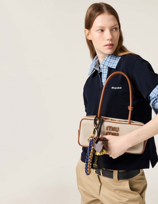 미우미우 캔버스 가죽 보 백  미디움